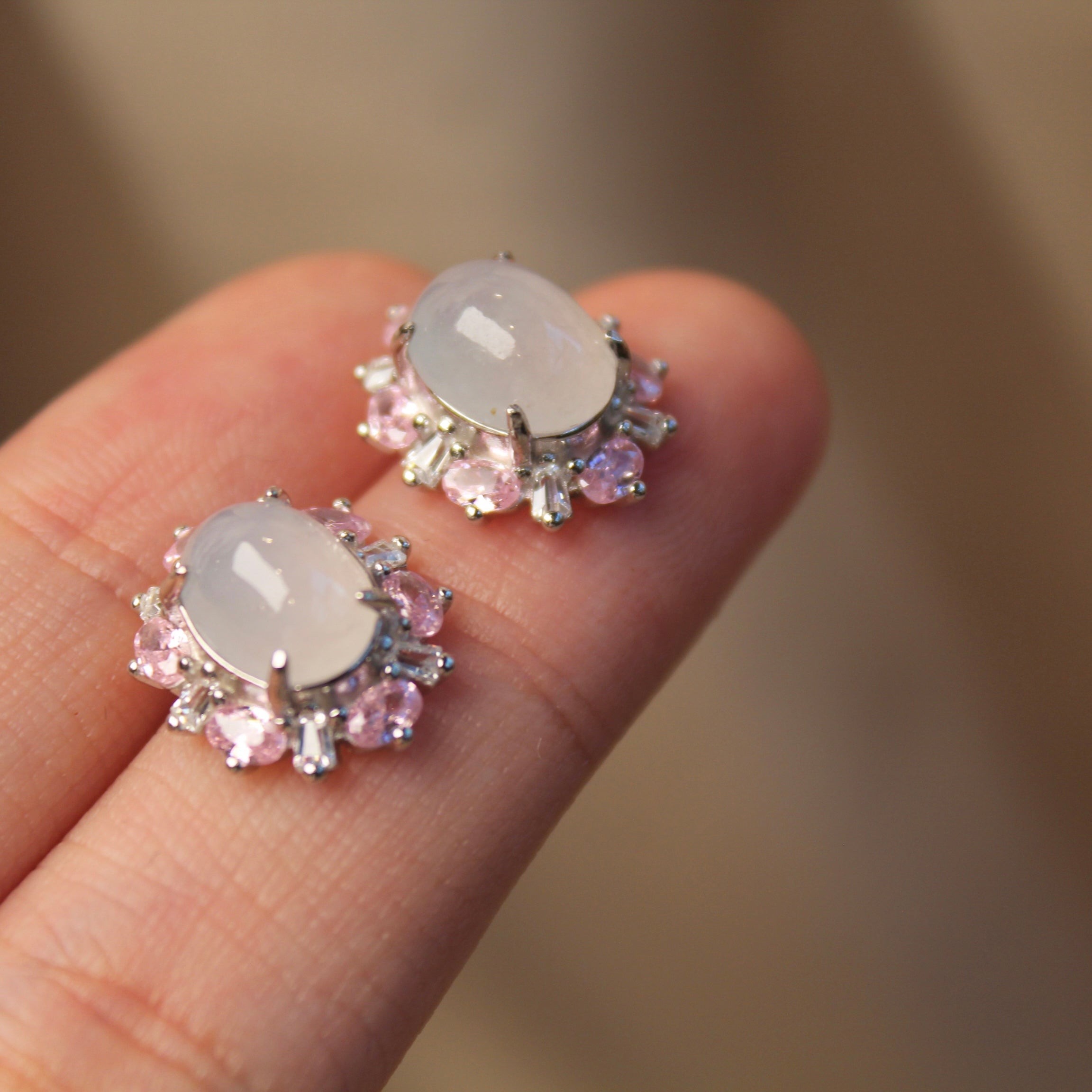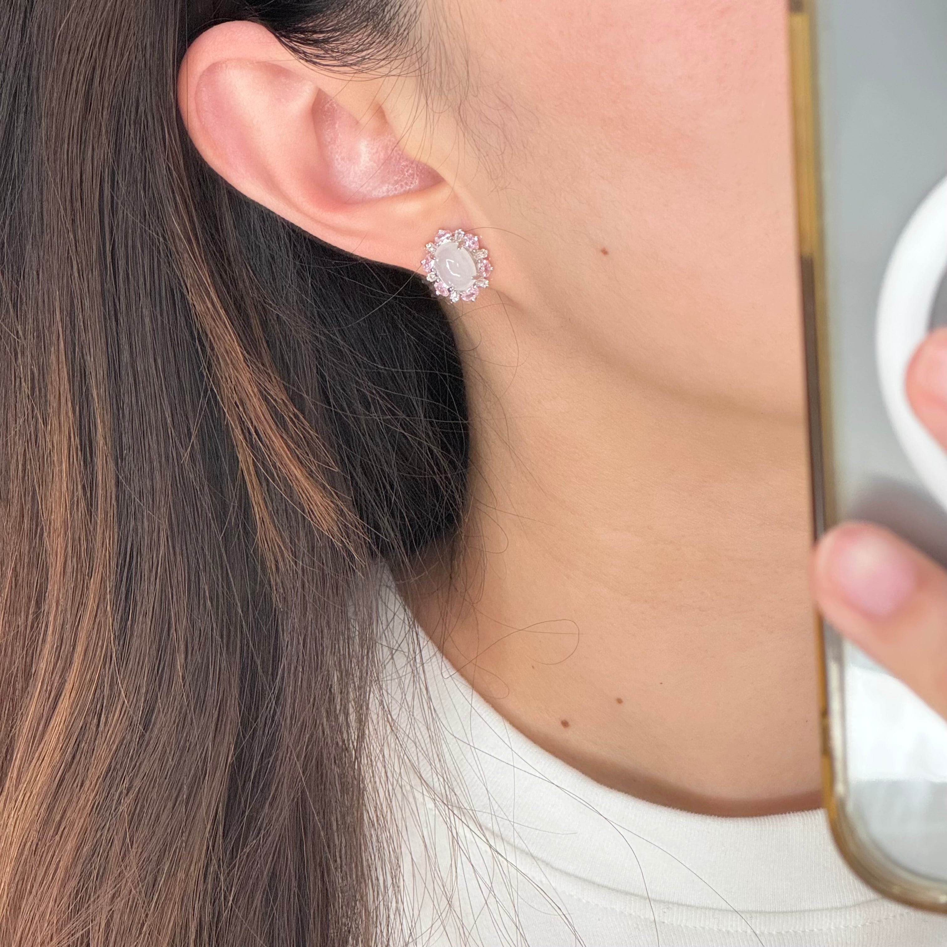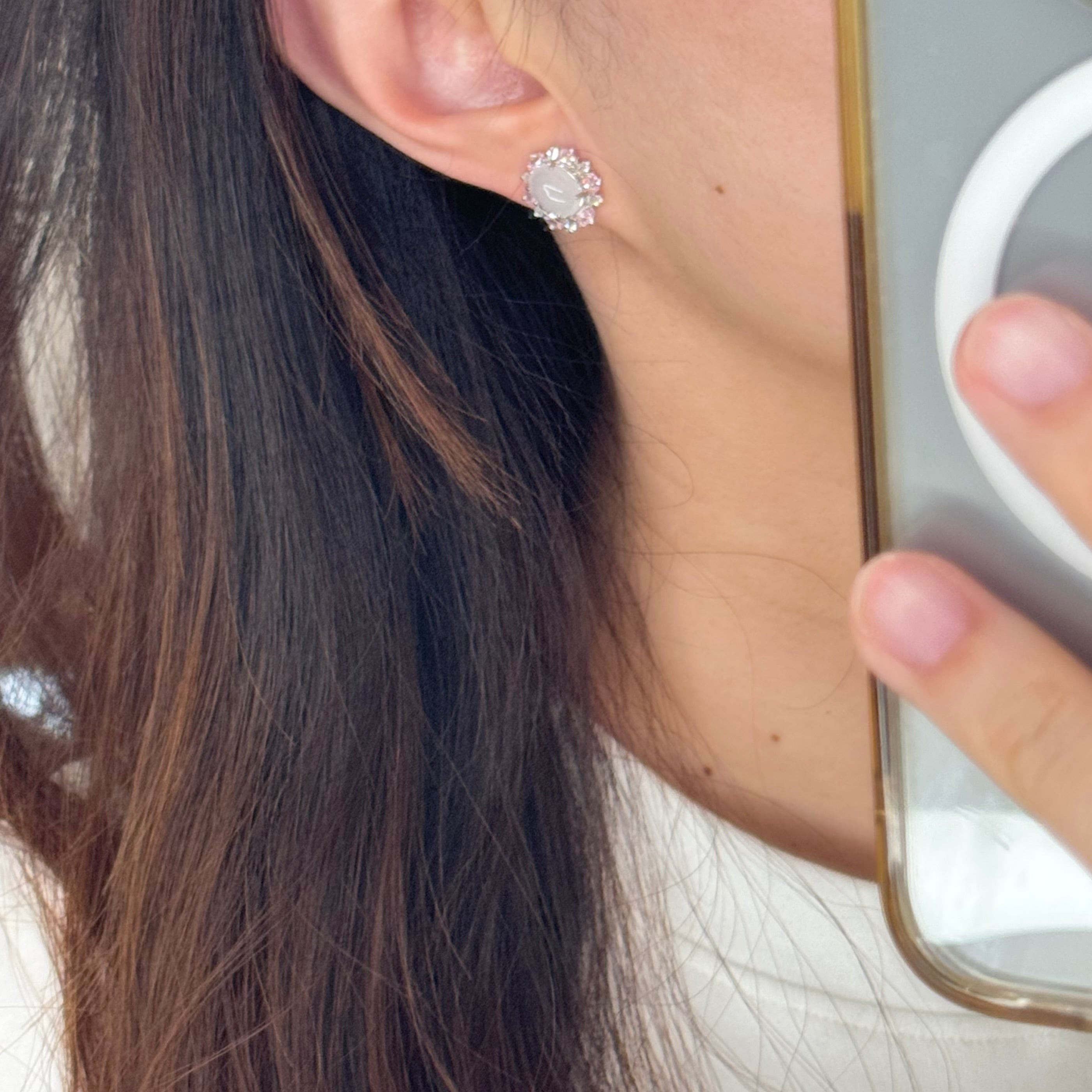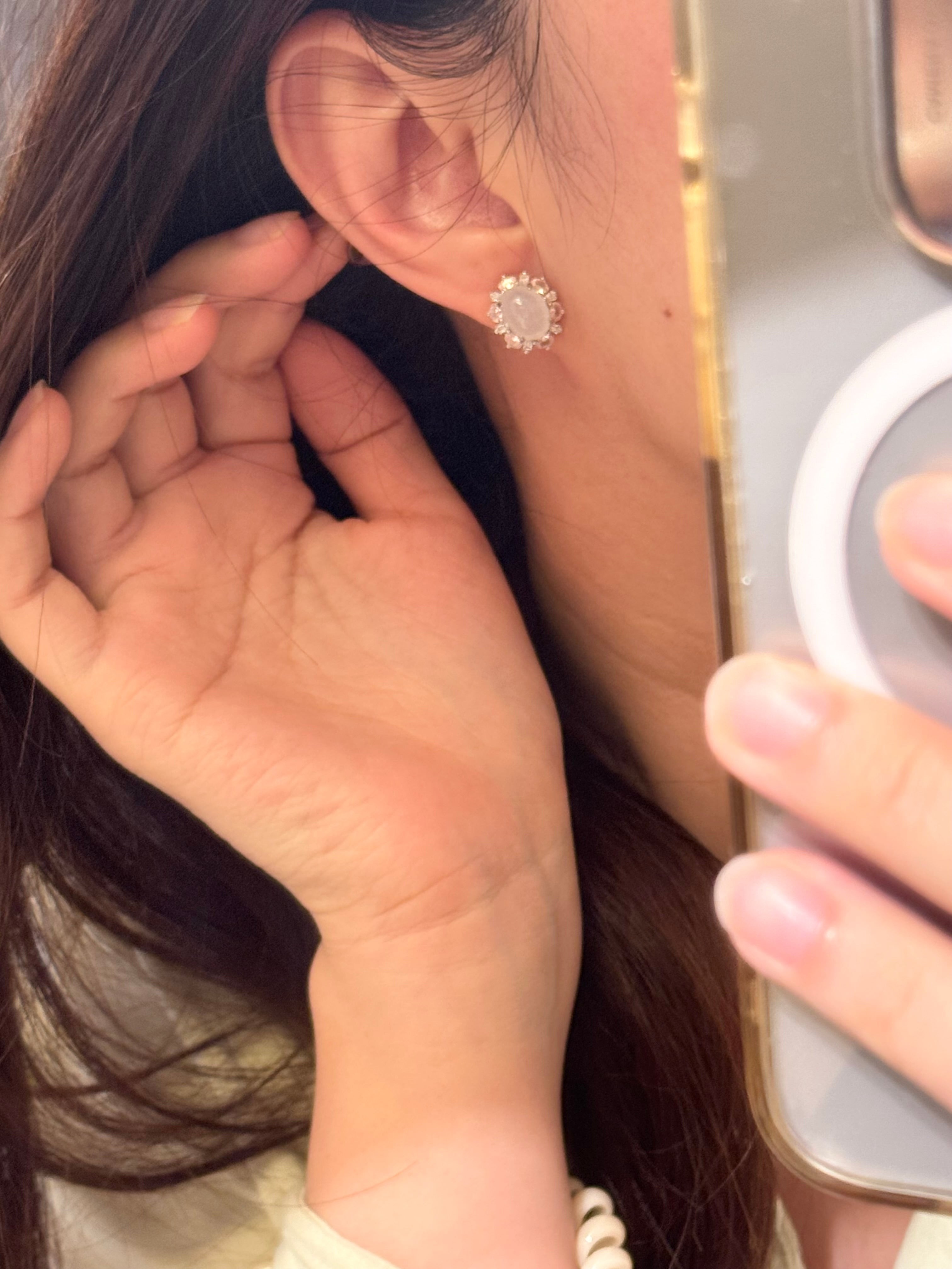 太阳花天然白冰翡翠耳钉