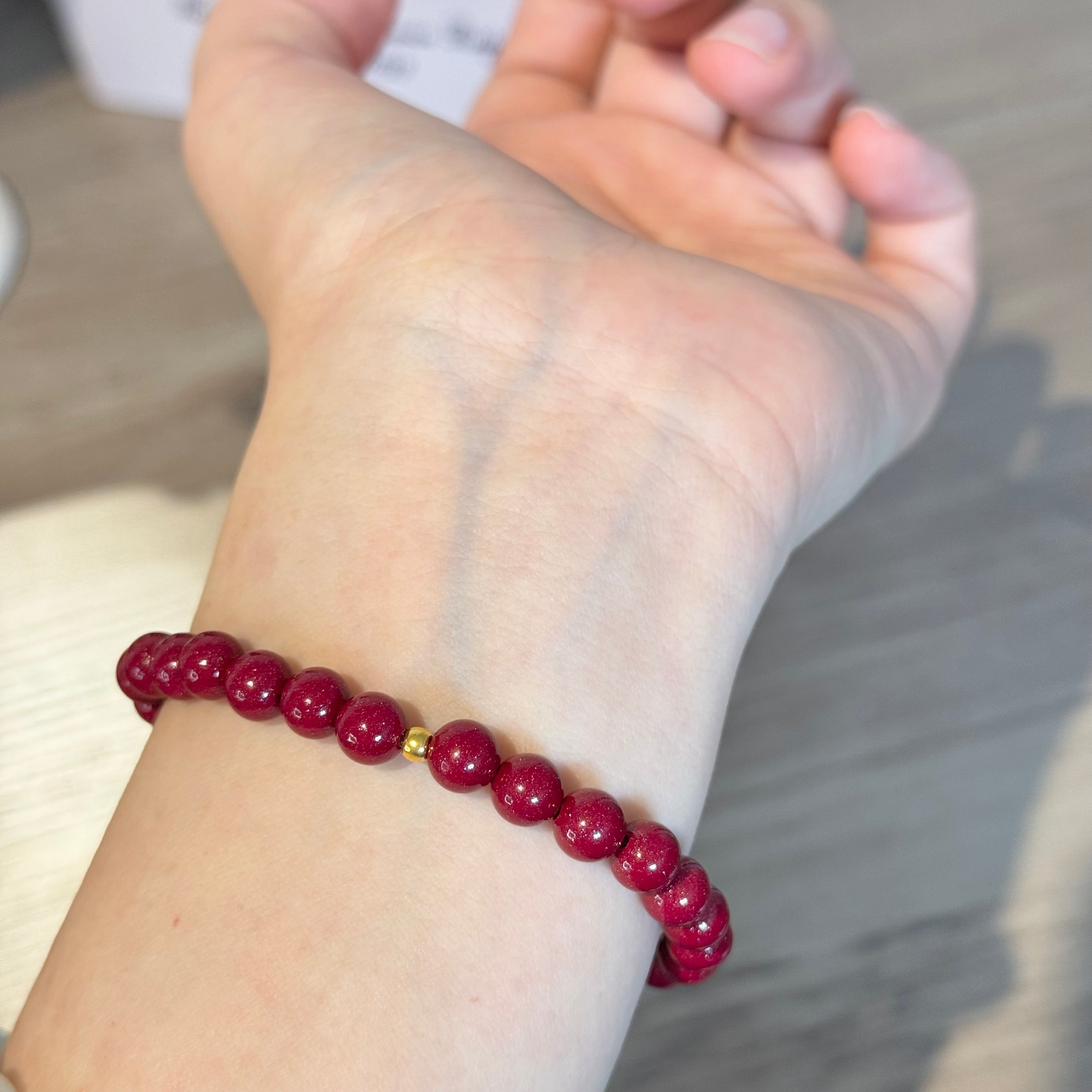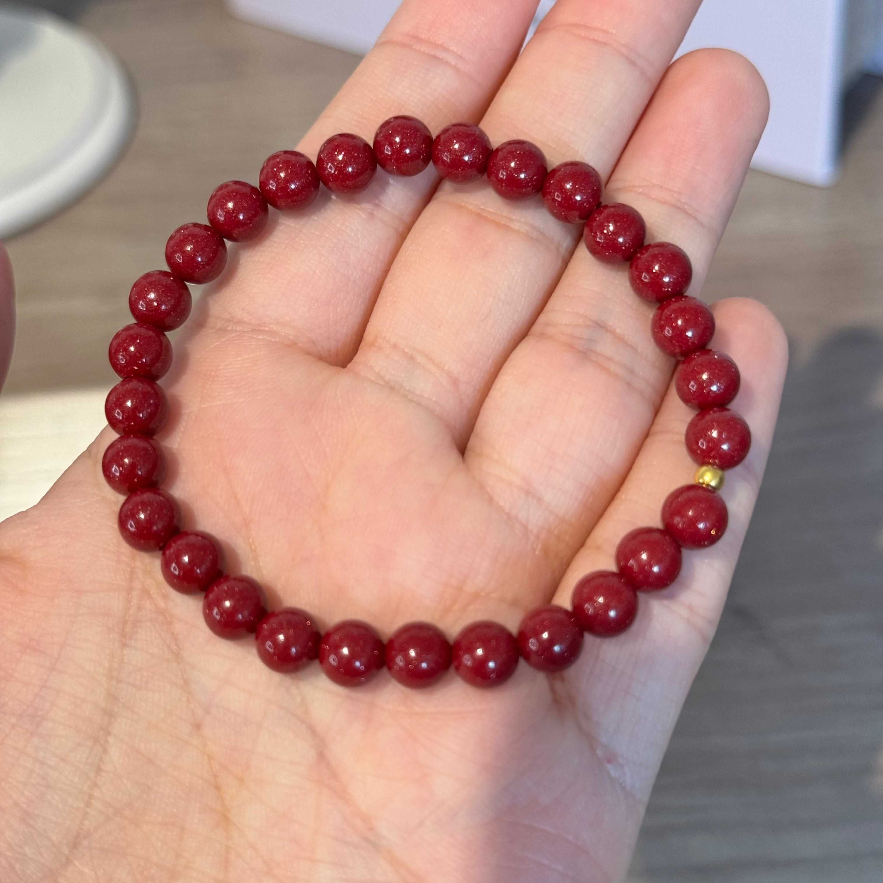 8mm或者4mm紫金砂,足金珠; 适合手围15.5厘米以内