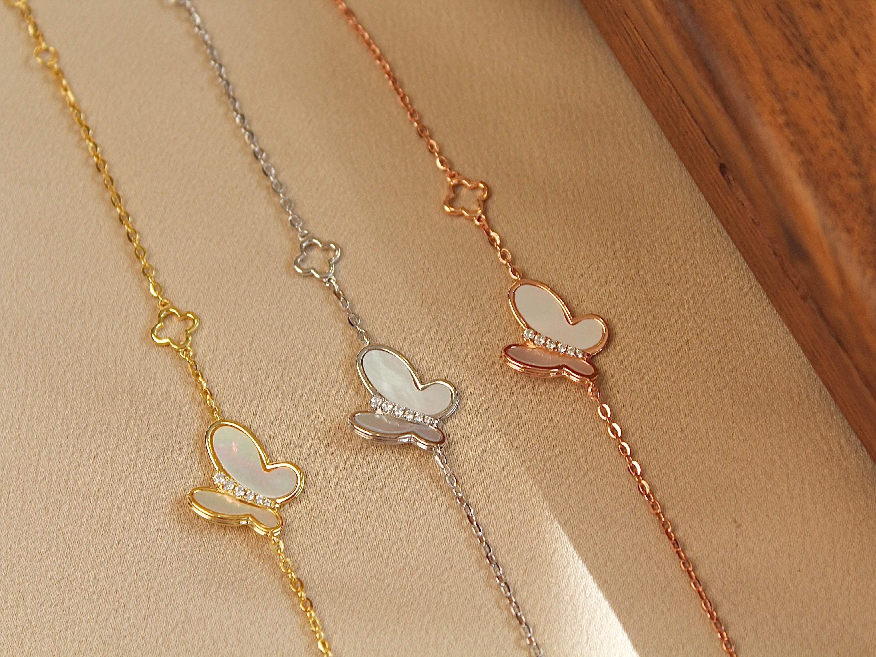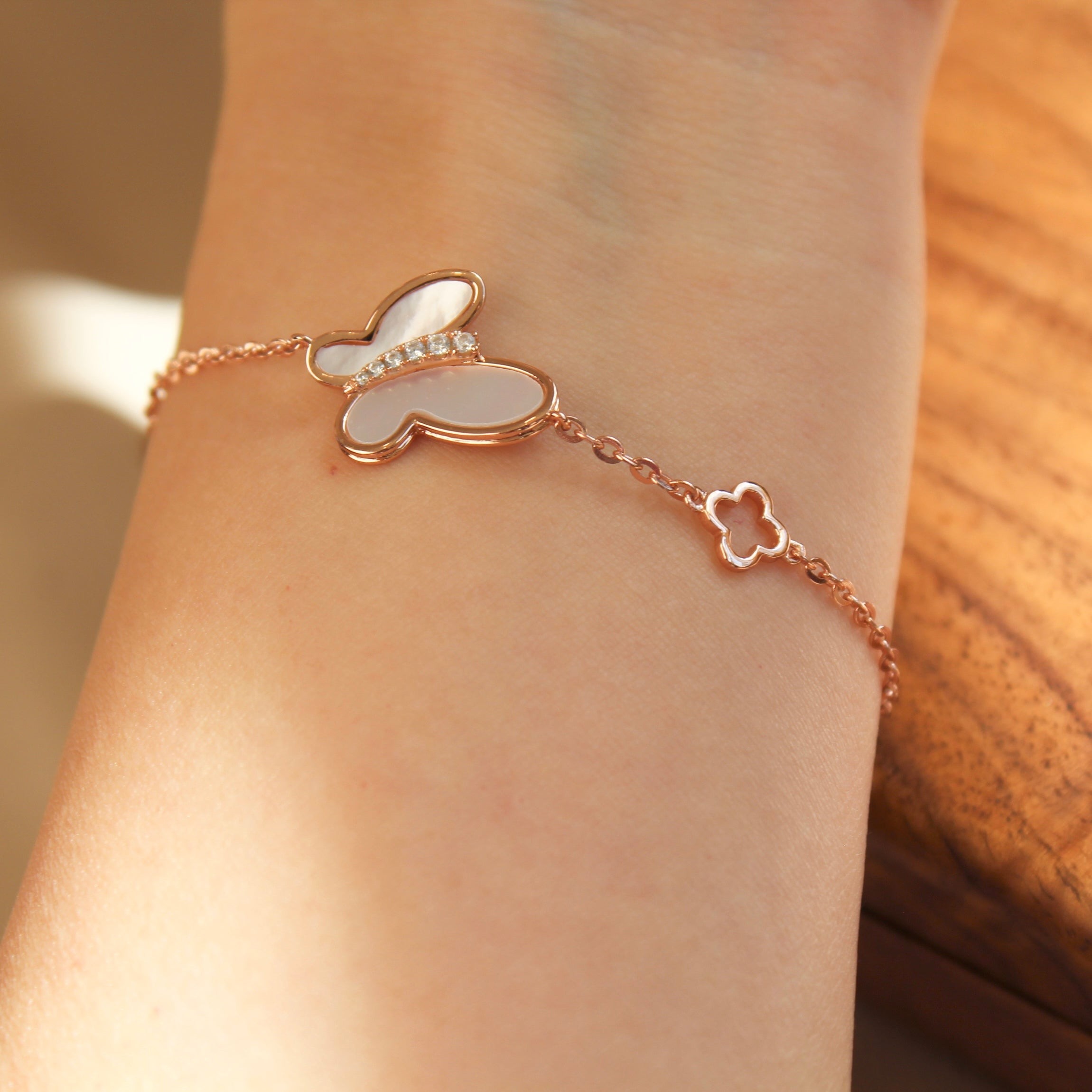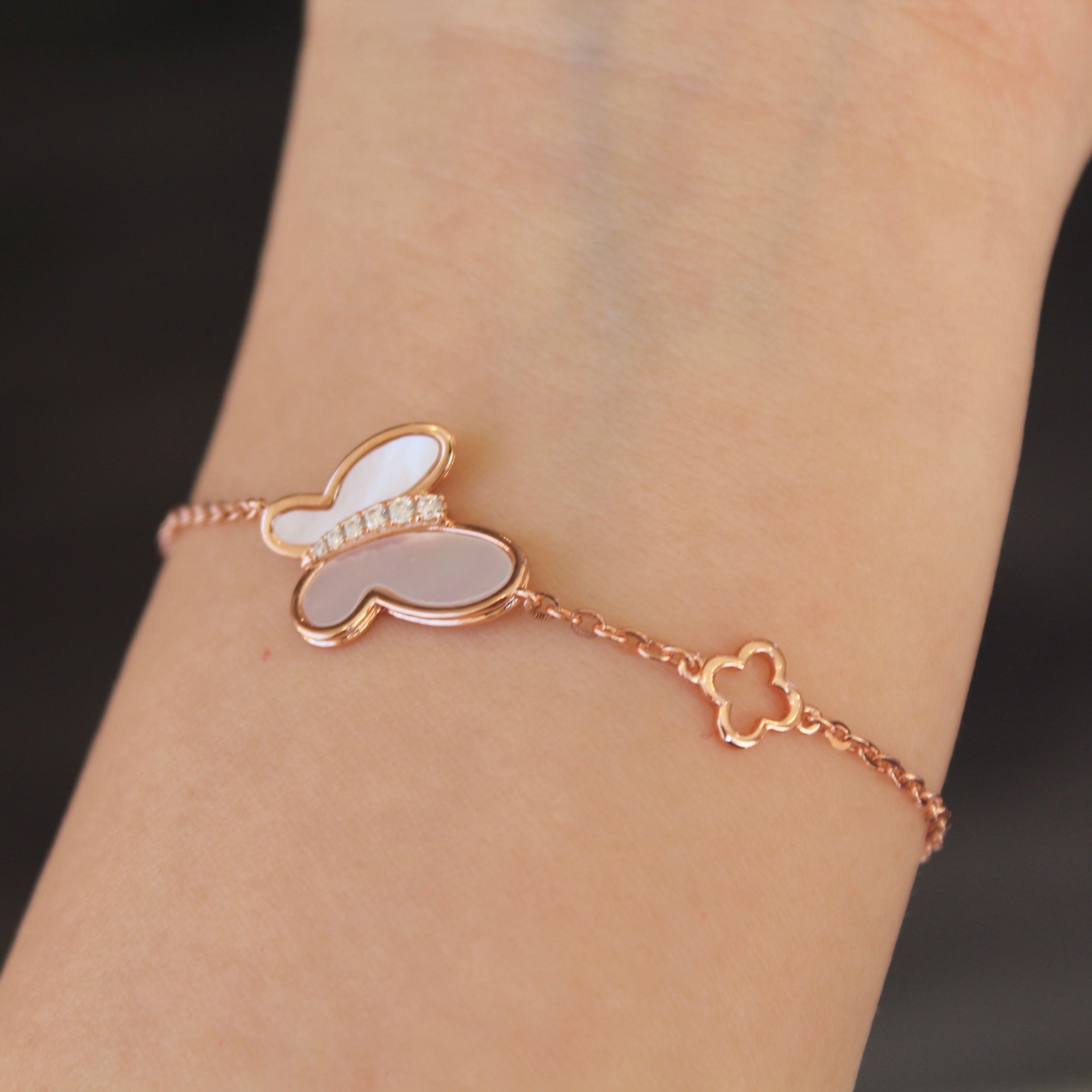 玫瑰金色蝴蝶贝母手链