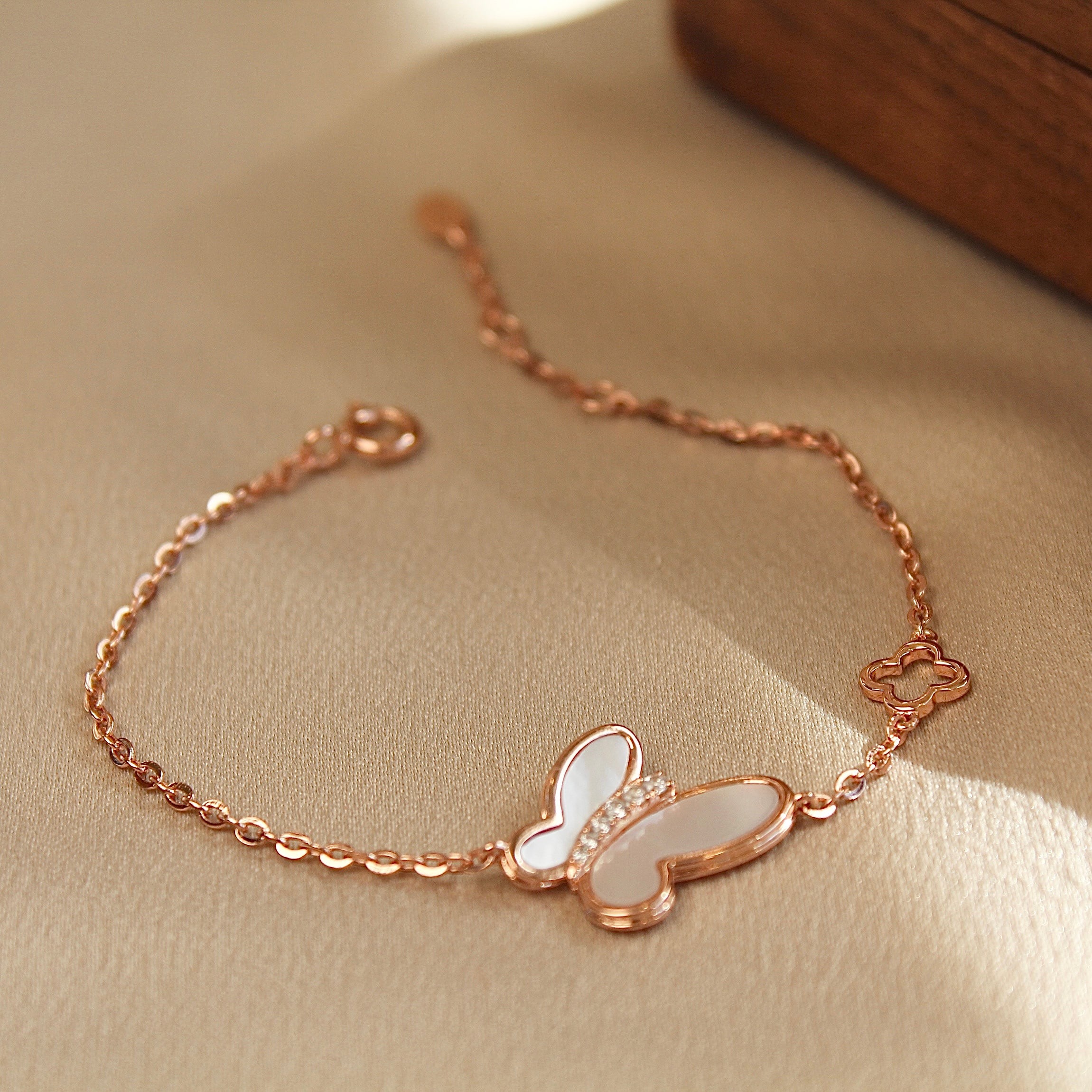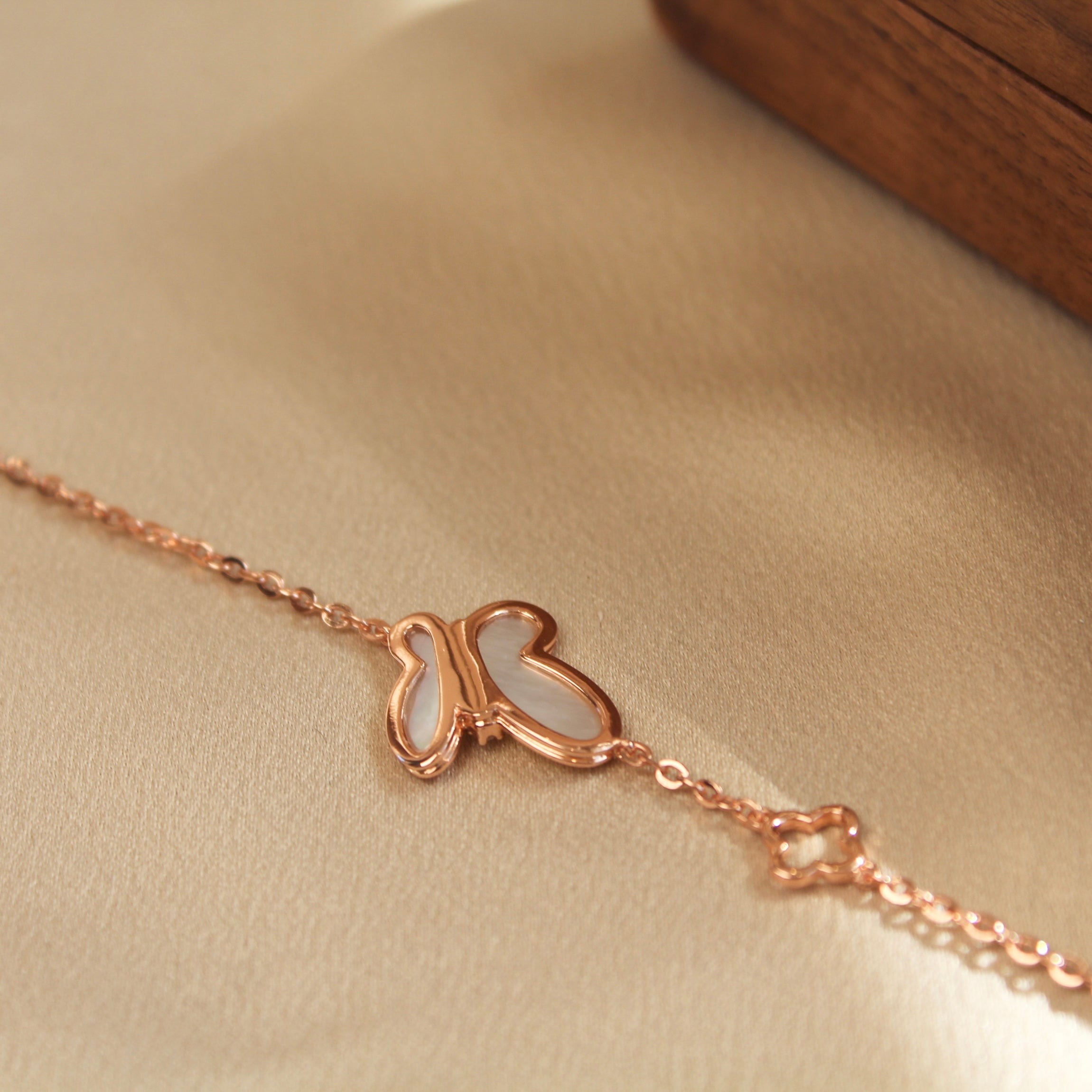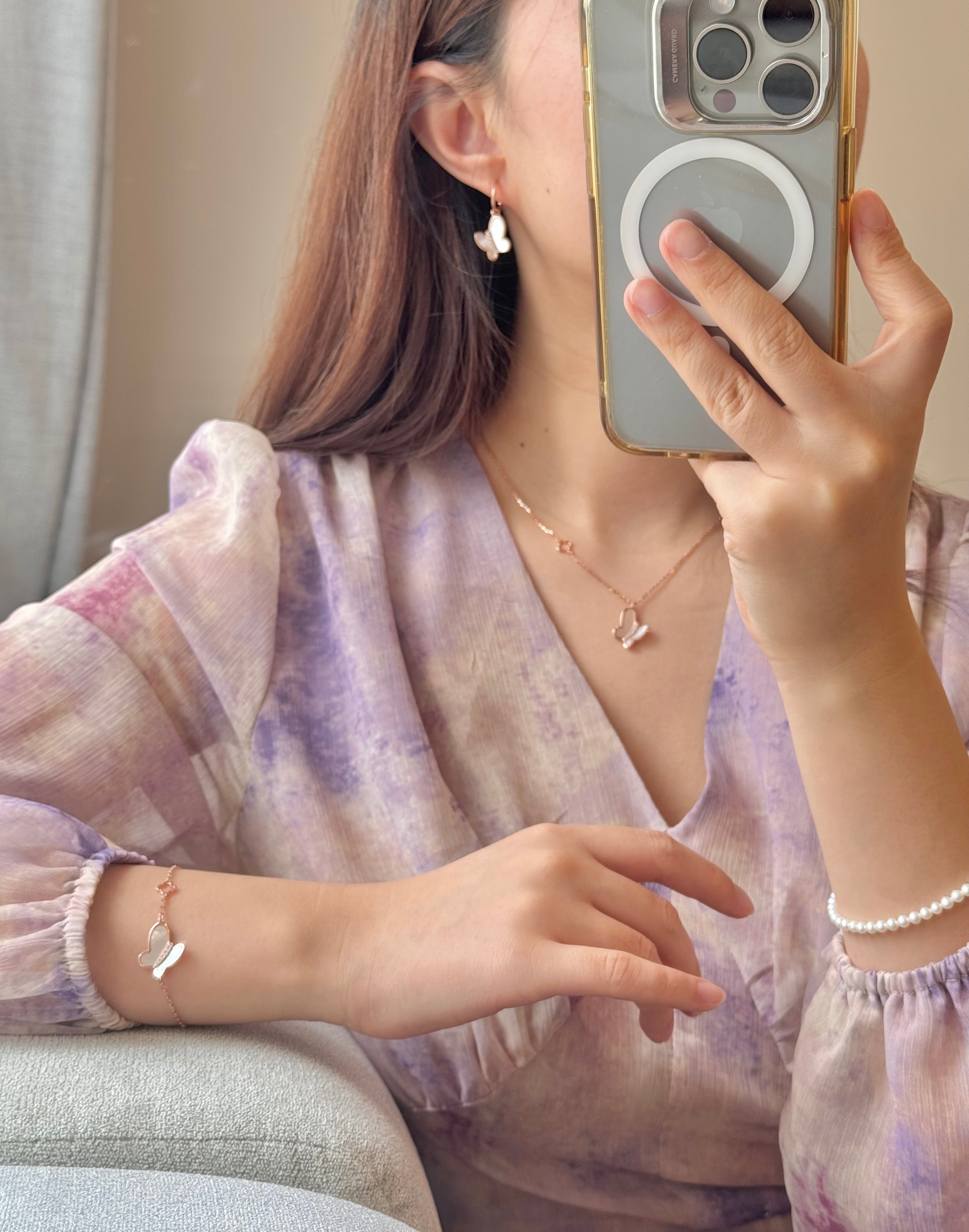 玫瑰金色蝴蝶贝母手链