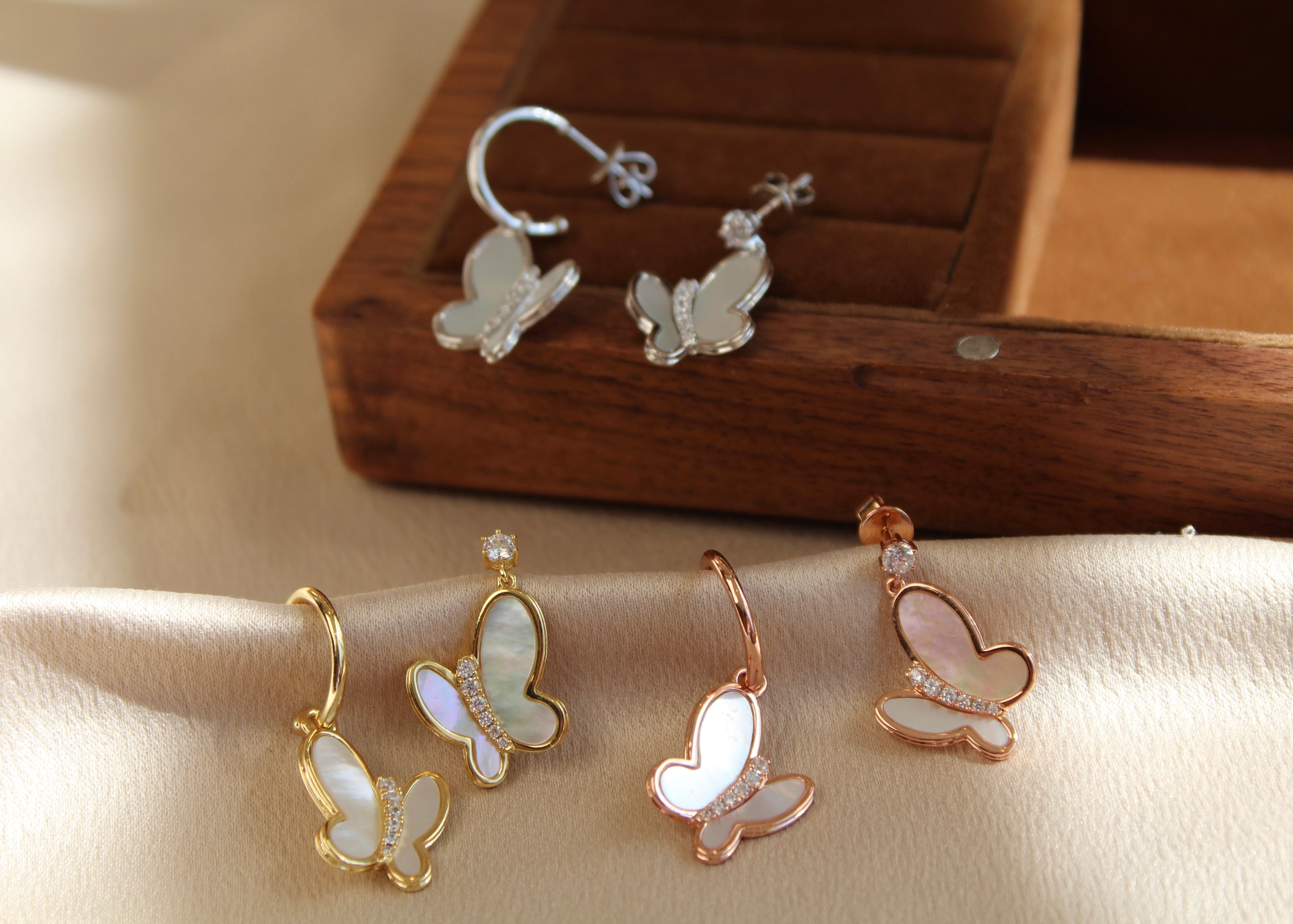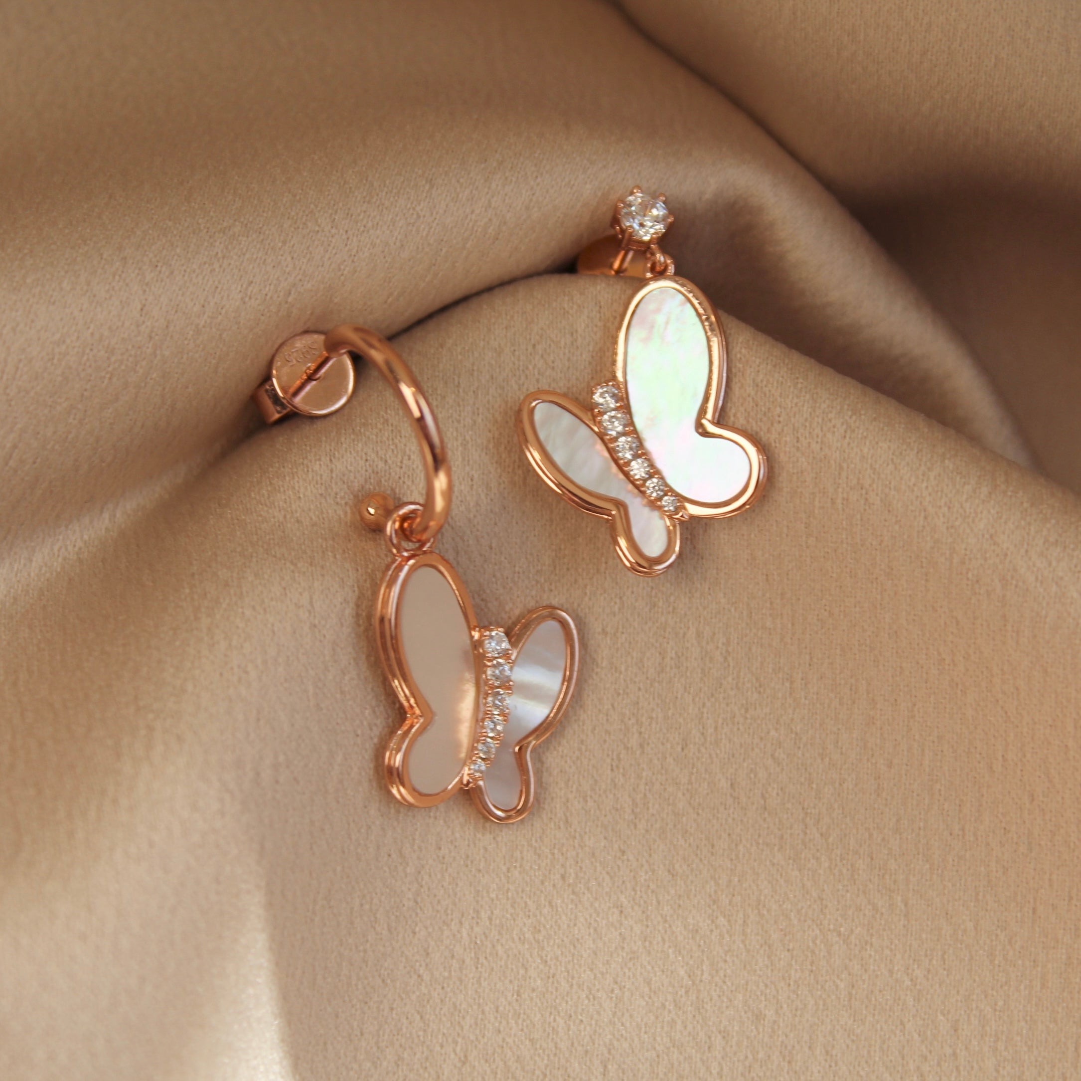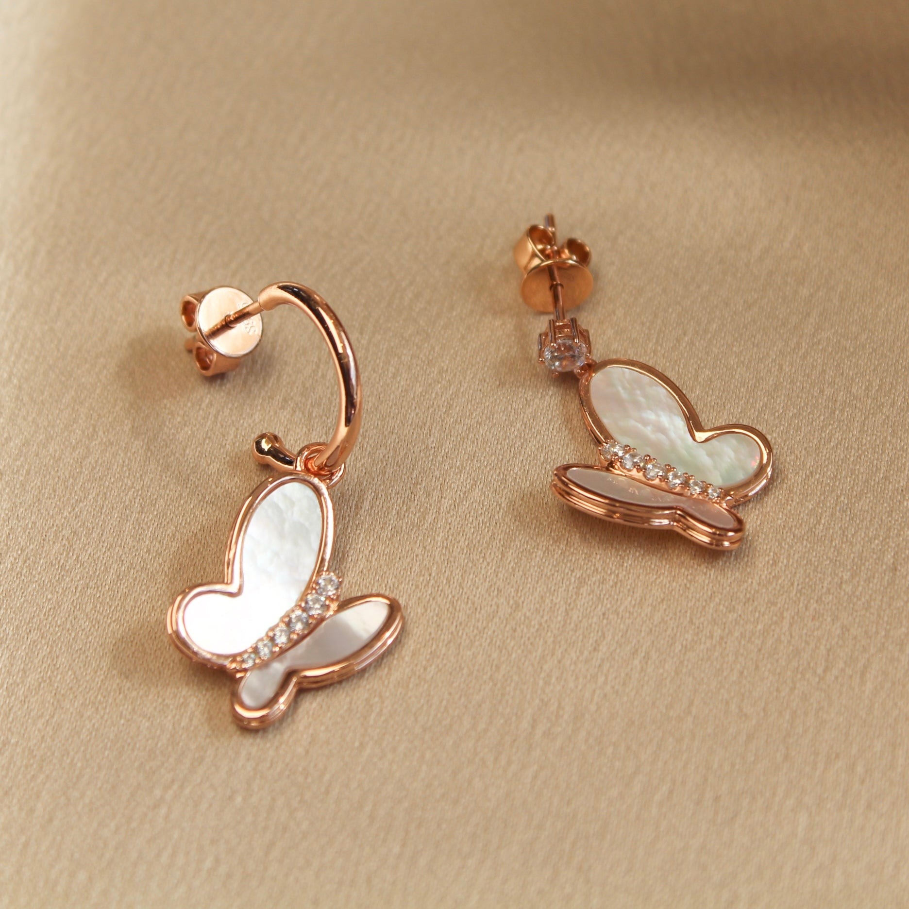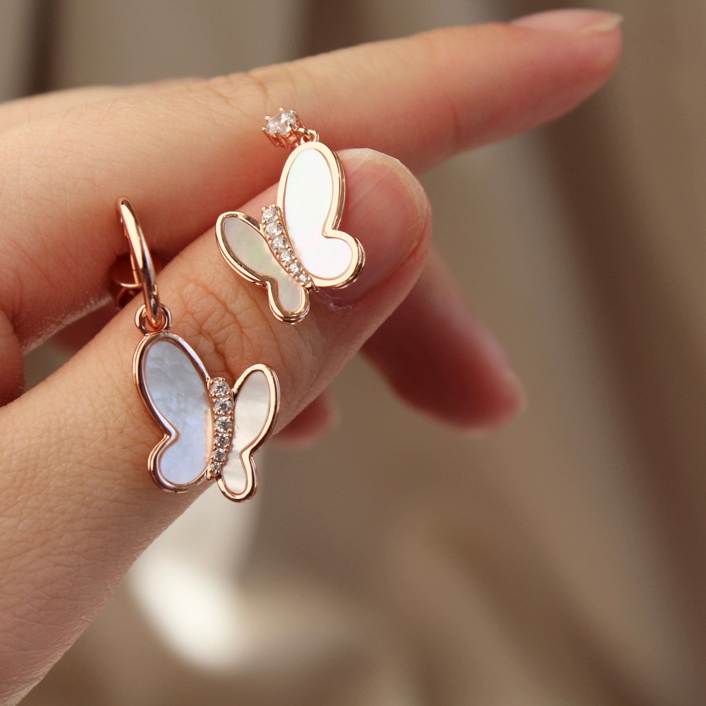 玫瑰金色蝴蝶贝母耳钉
