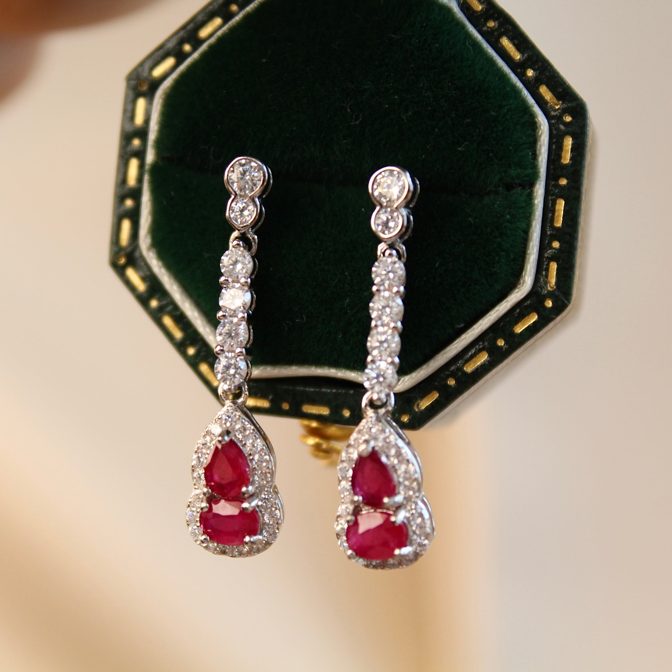 葫芦红宝石流苏耳坠