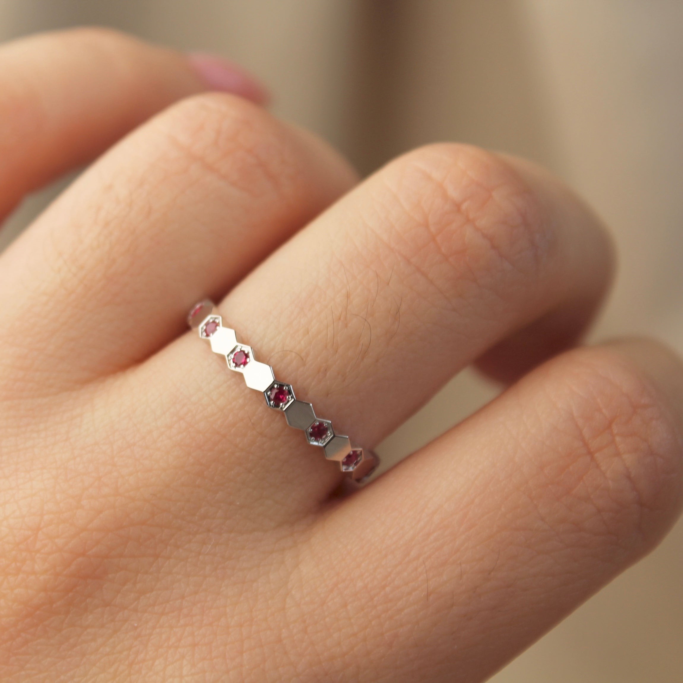蜂巢红宝石戒指
