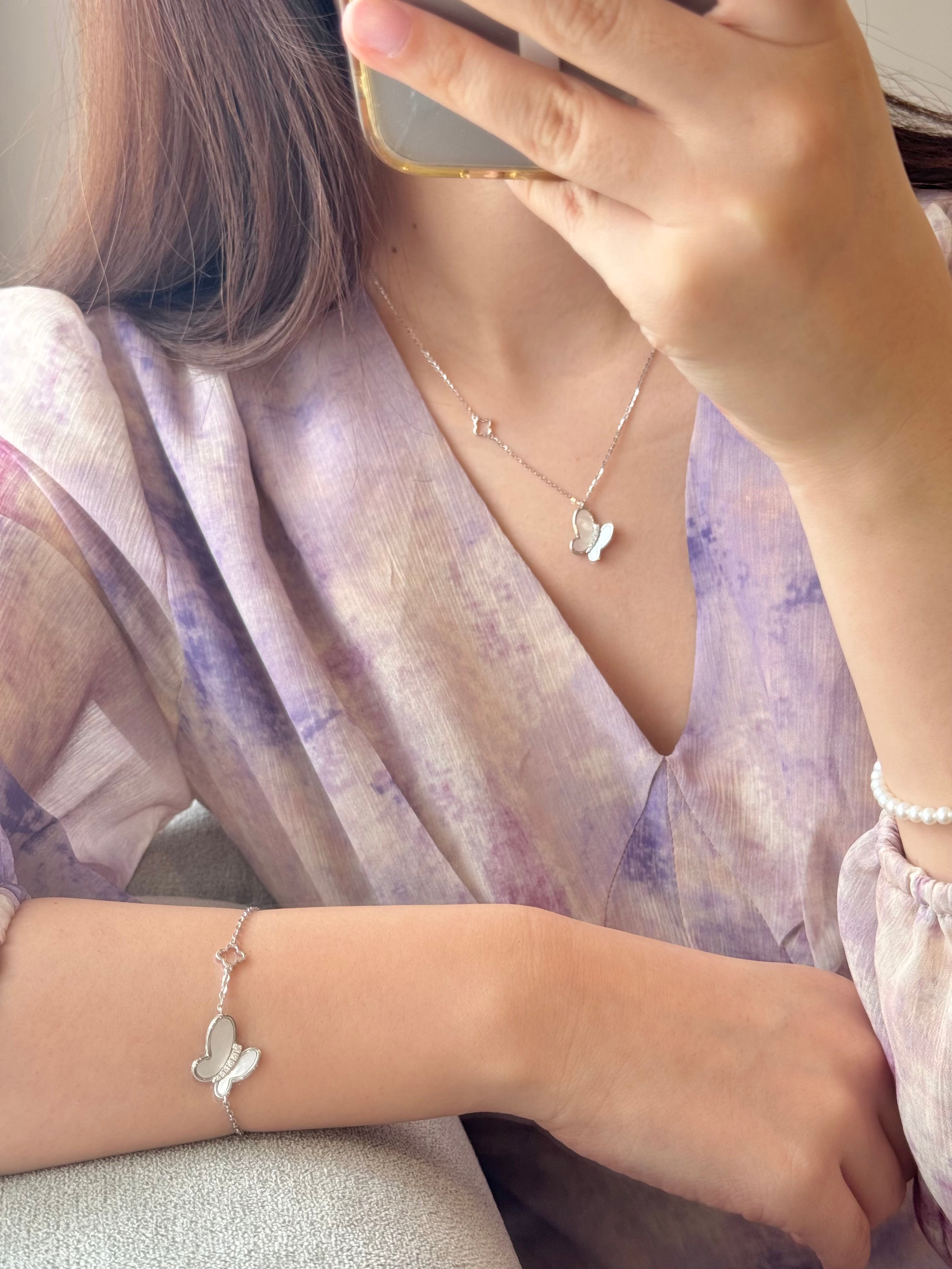 Materials: Natural Mother of Pearl, 18K White Gold on Sterling Silver