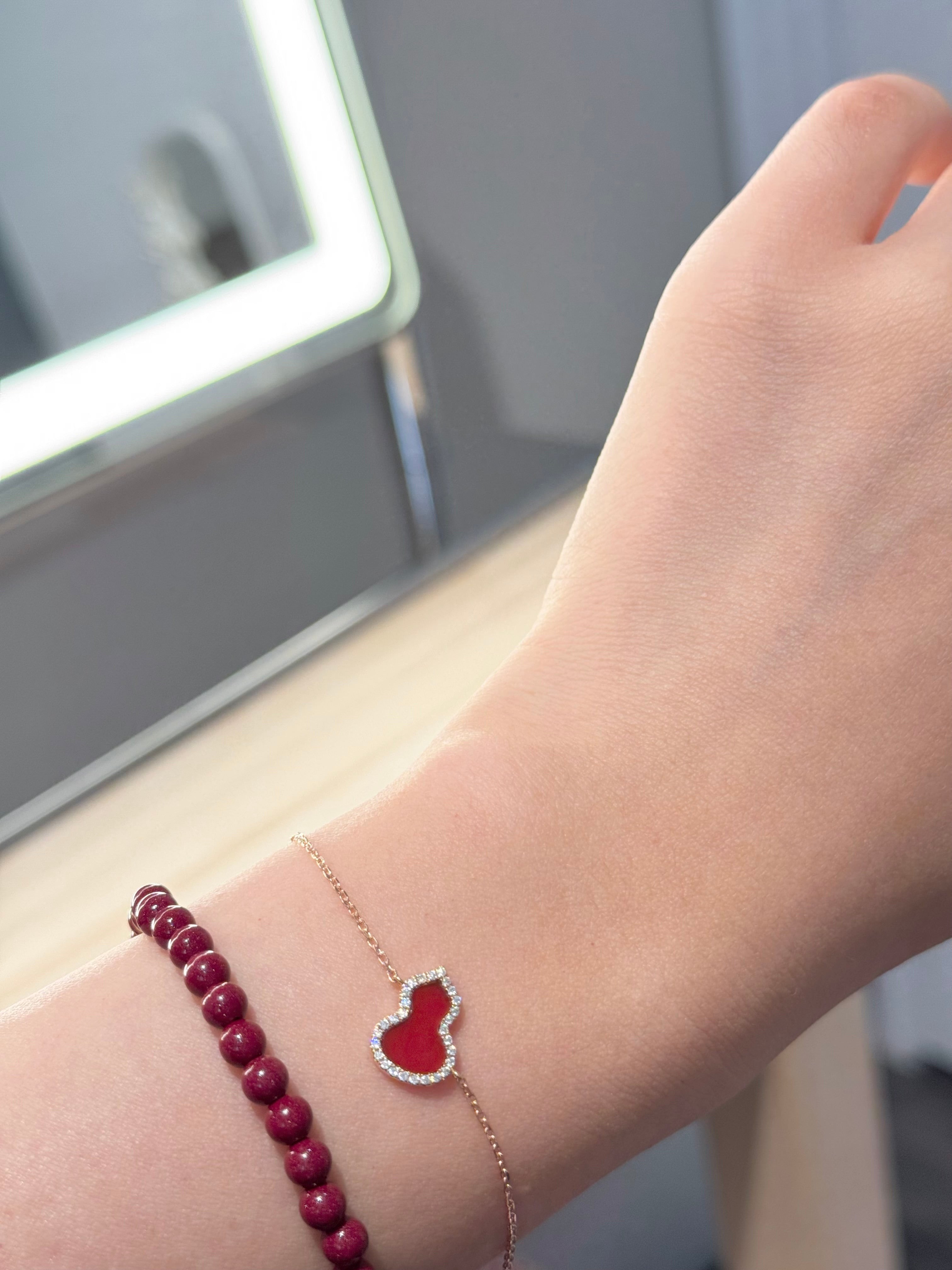 14K玫瑰金红玛瑙葫芦手链