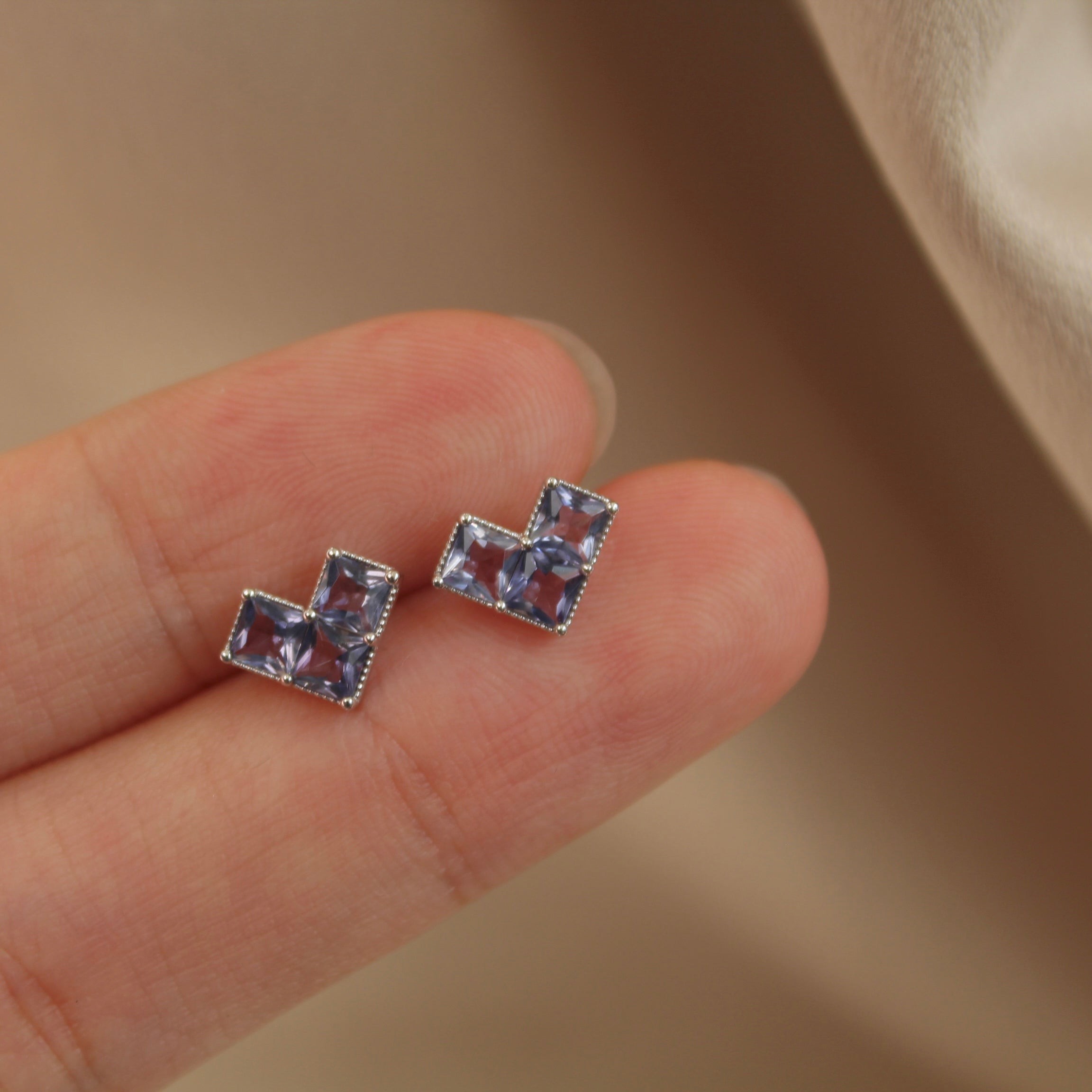 Materials: 14K Solid White Gold, Natural Lolite 堇青石